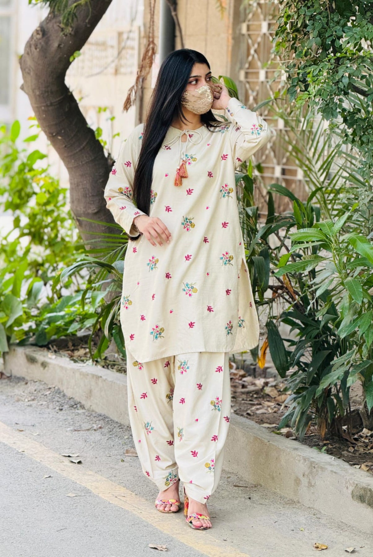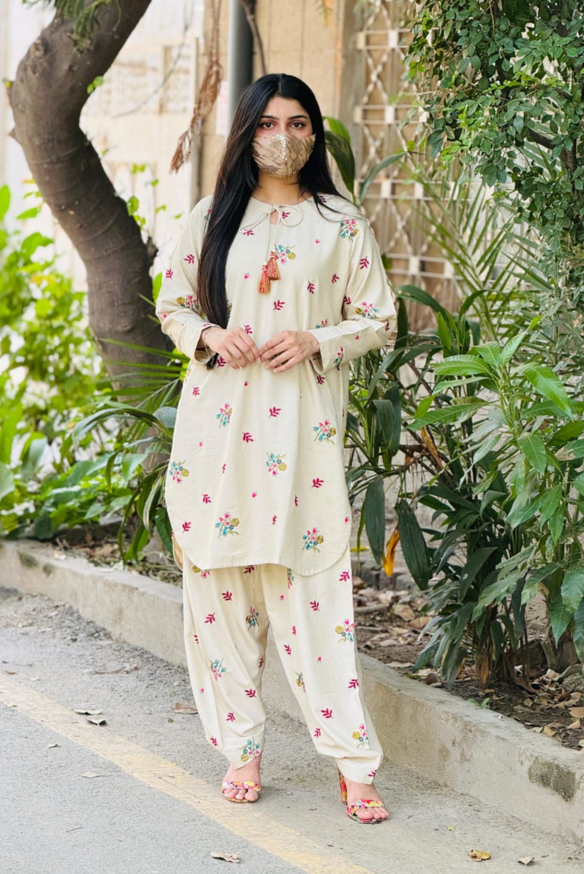 Fully embroidered Dhanak shirt with embroidered Shalwar Which Is A Perfect Match For Any Occasion