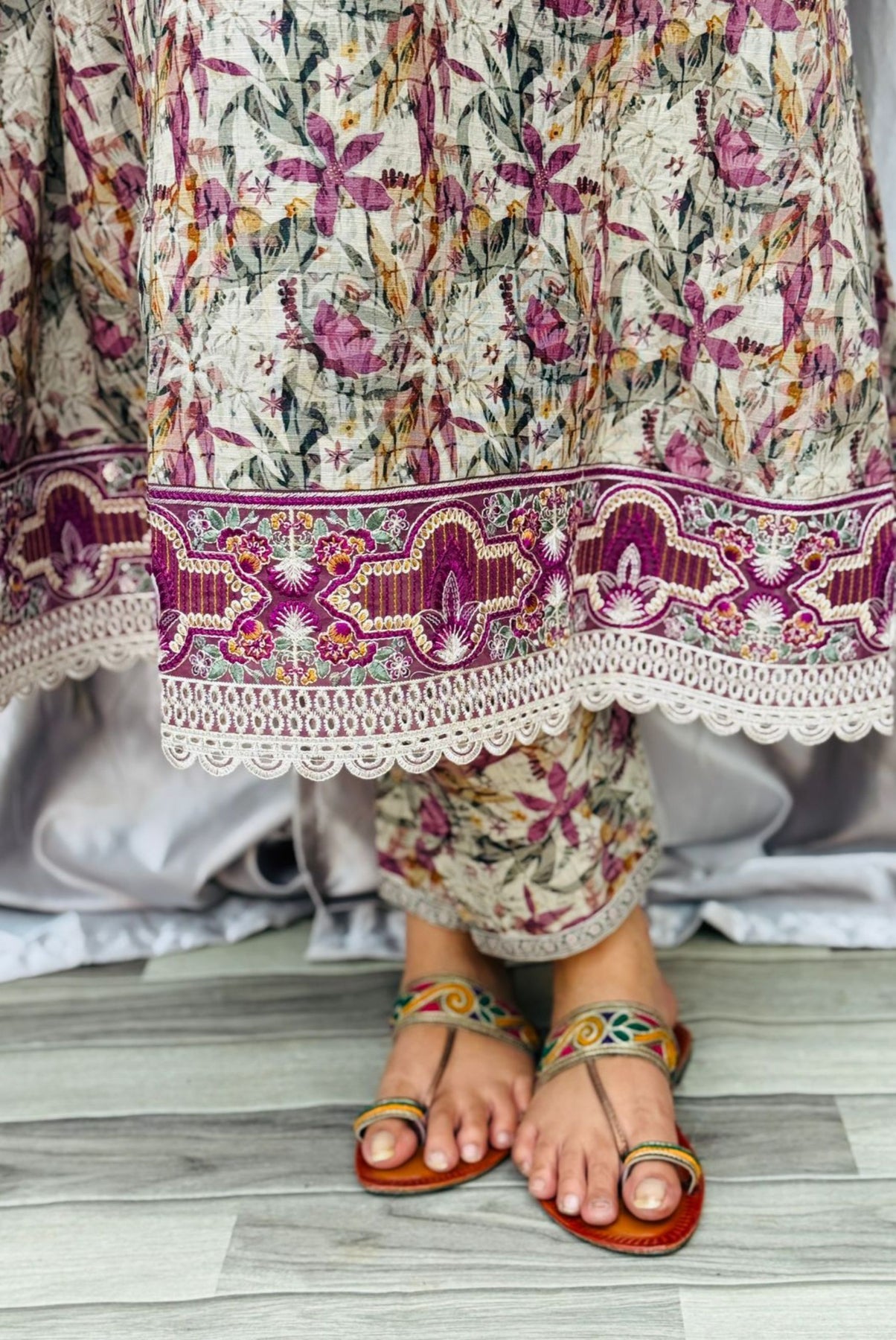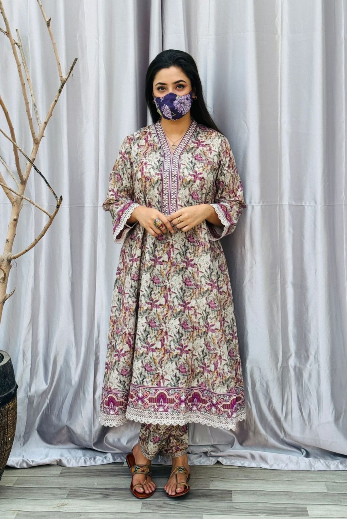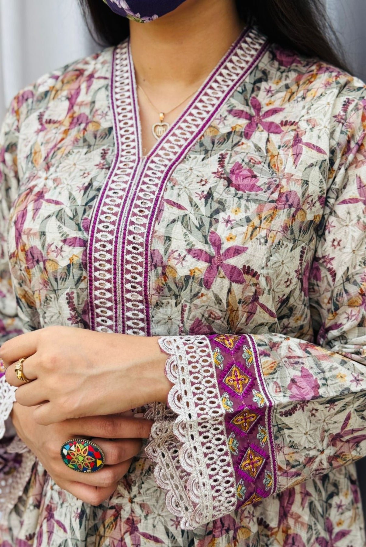 An Embroidered Khaddar Frock With Decorous Embroidery On Neckline ,Sleeves And Border Is Paired Up With Trouser Which Is A Perfect Match For Any Occasion