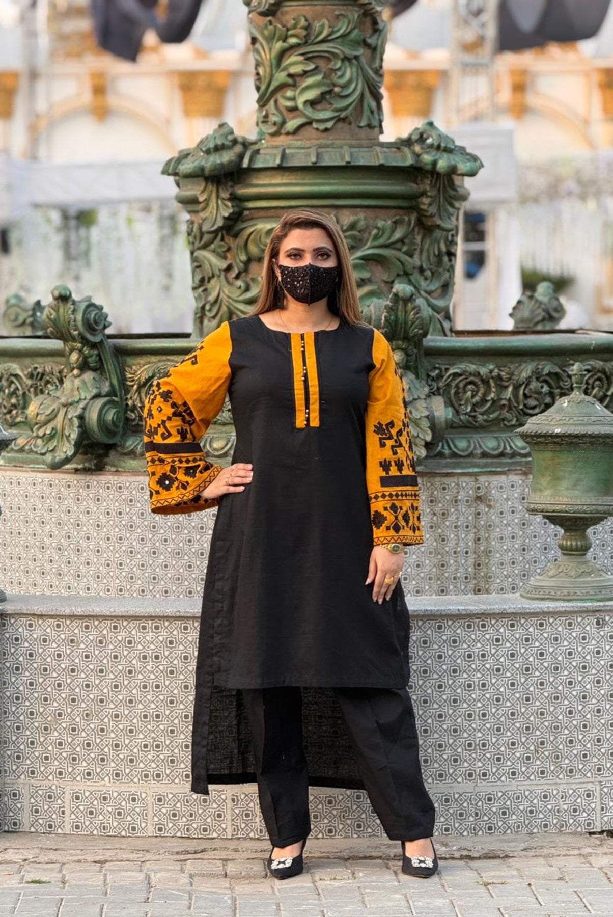 A Stylish Khaddar Shirt With Embroidered Sleeves Is Paired Up With Trouser Is A Perfect Match For Any Occassion