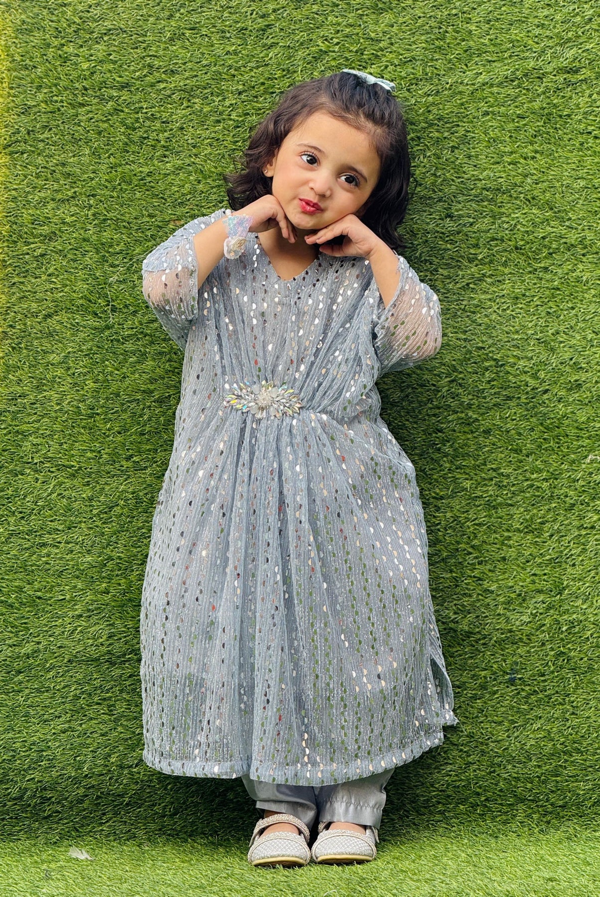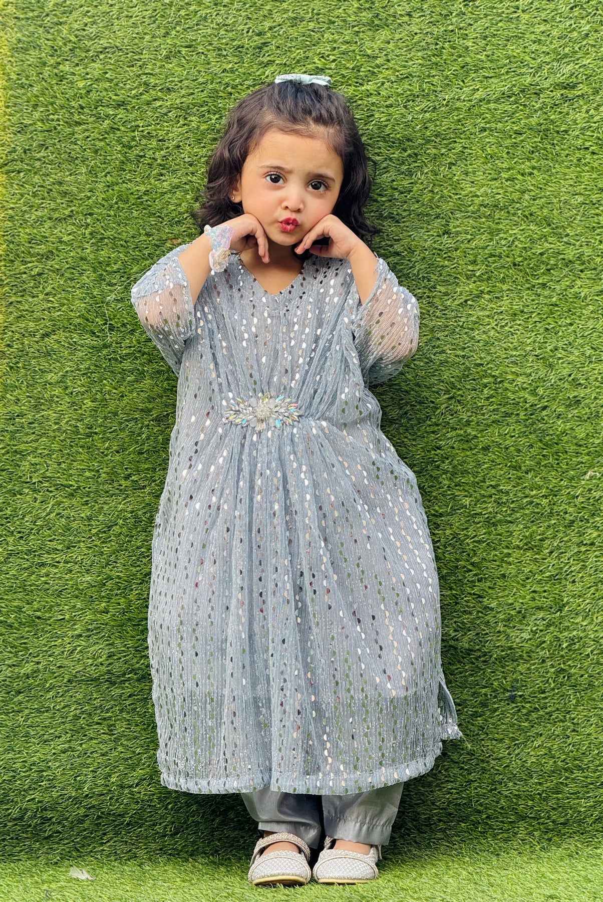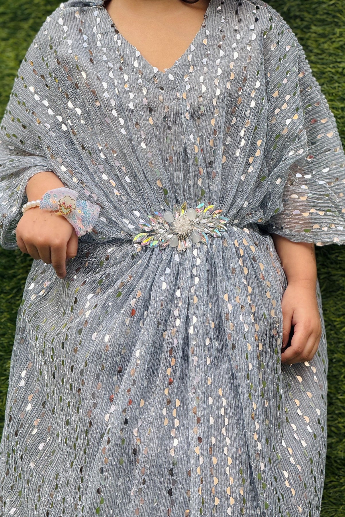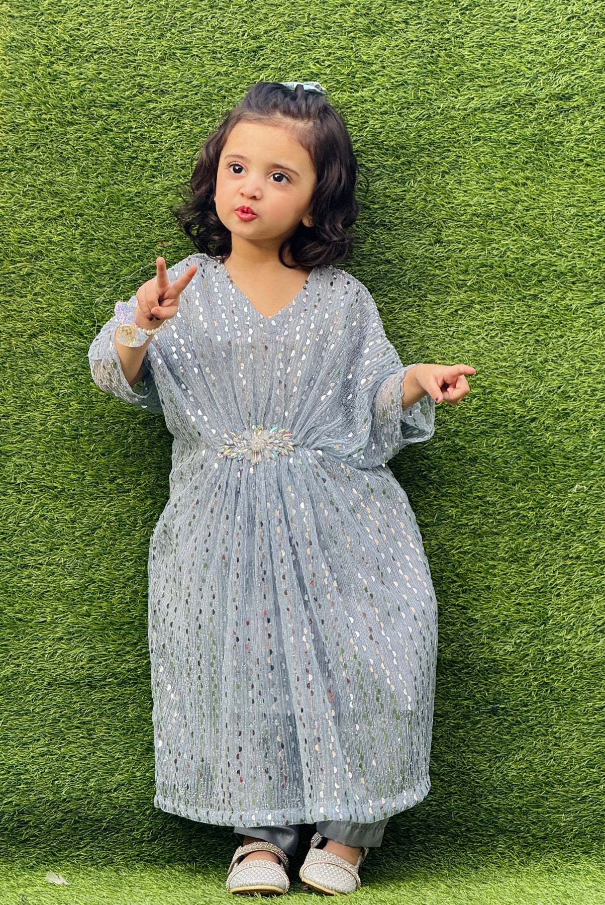 A Stylish Moon Light Kaftan With Decorous Style And Trouser Which Is A Perfect Match For This Eid