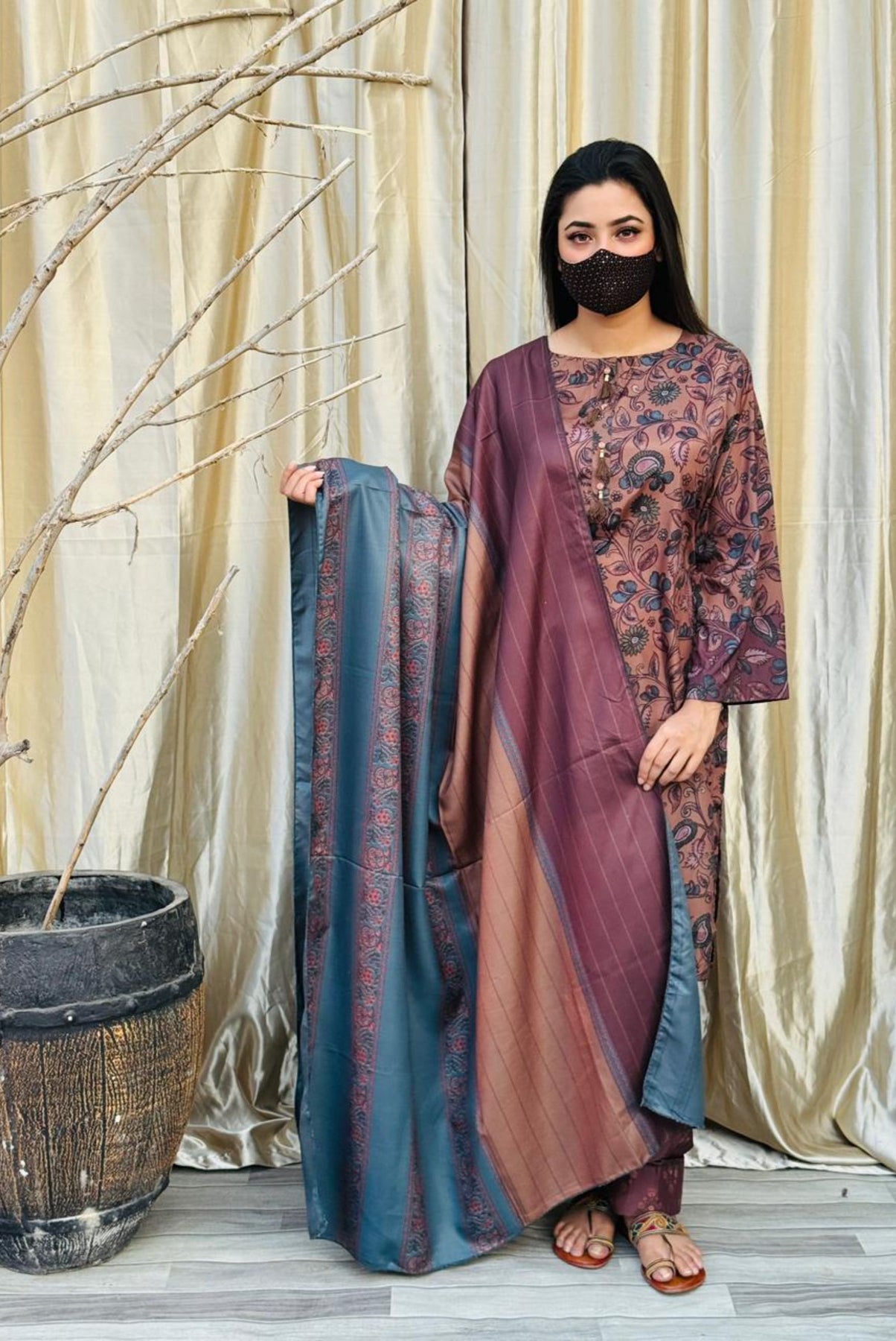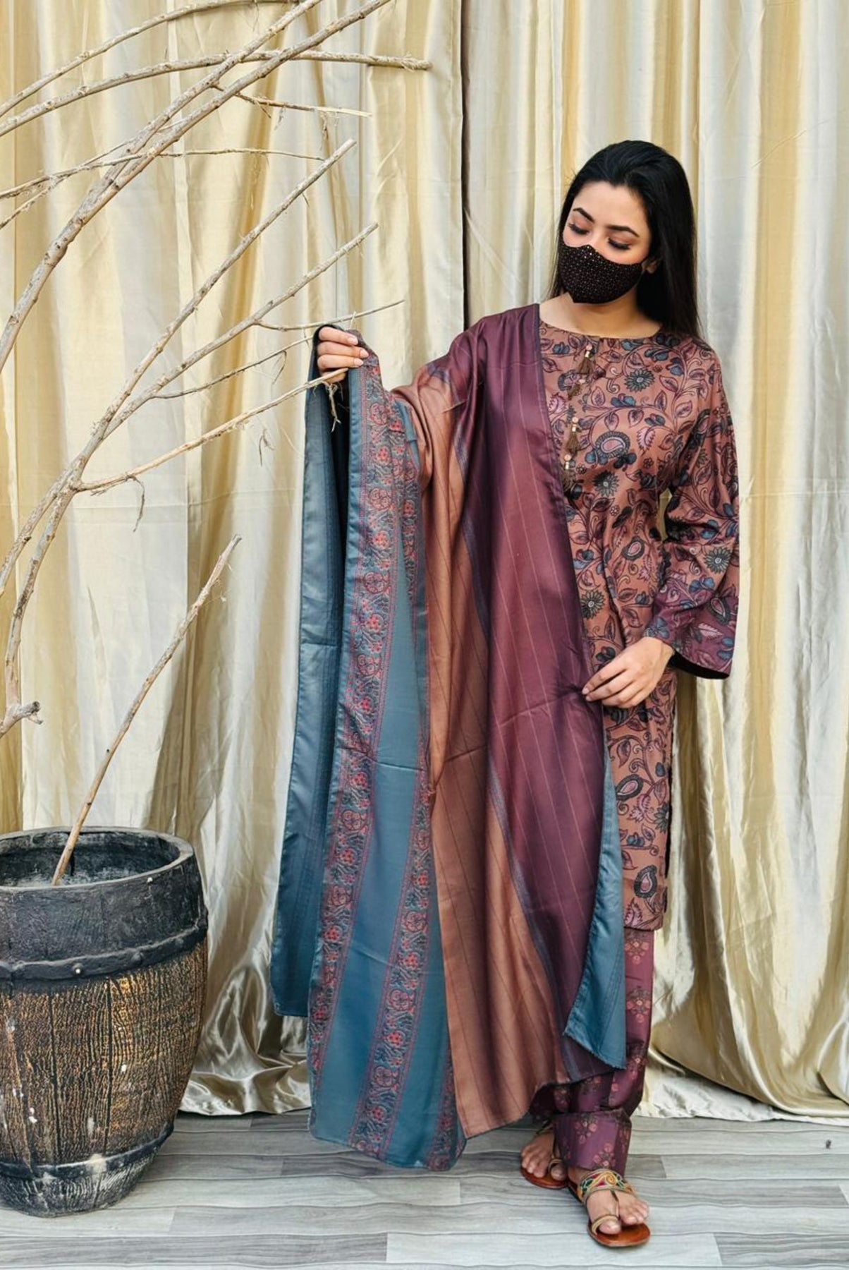 A Stylish Printed Poly Silk Shirt With Decorous Prints Is Paired Up With Trouser And Dupatta Which Is A Perfect Match For Any Occassion