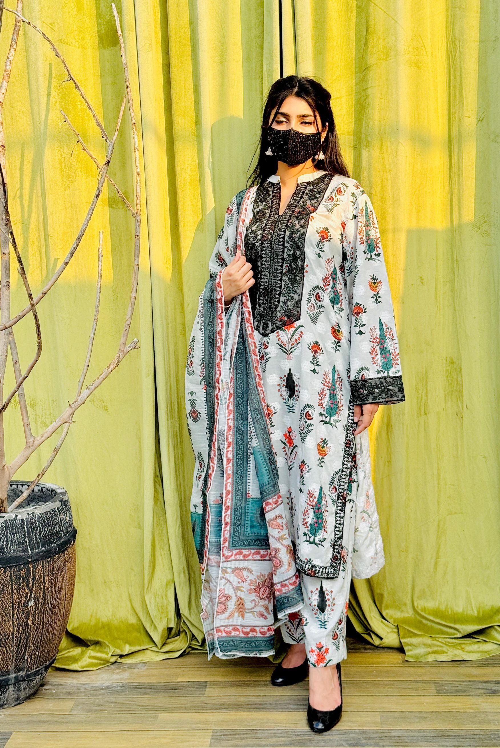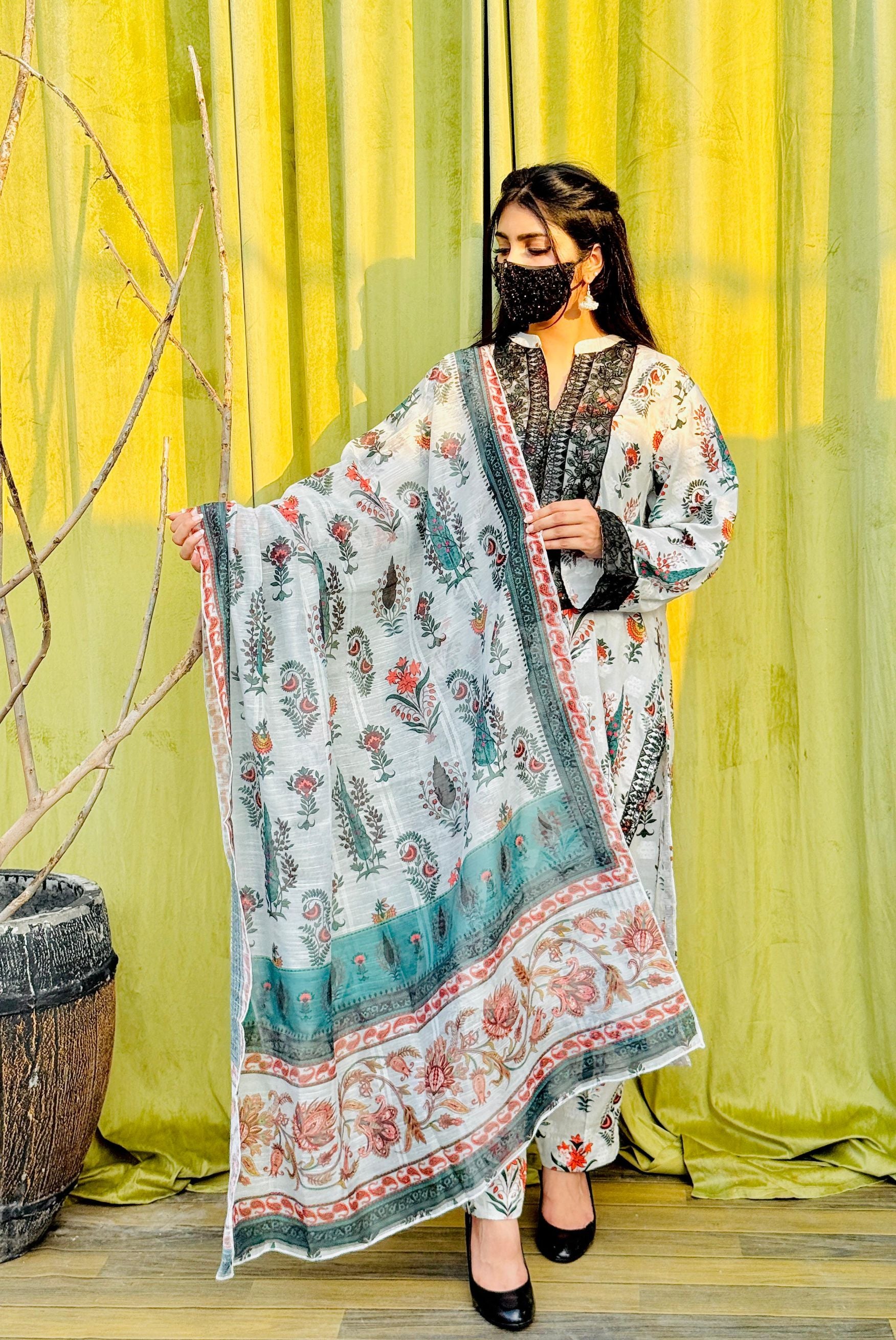 Fabric: Printed Jacquard 3Pcs ( Shirt + Trouser + Dupatta)