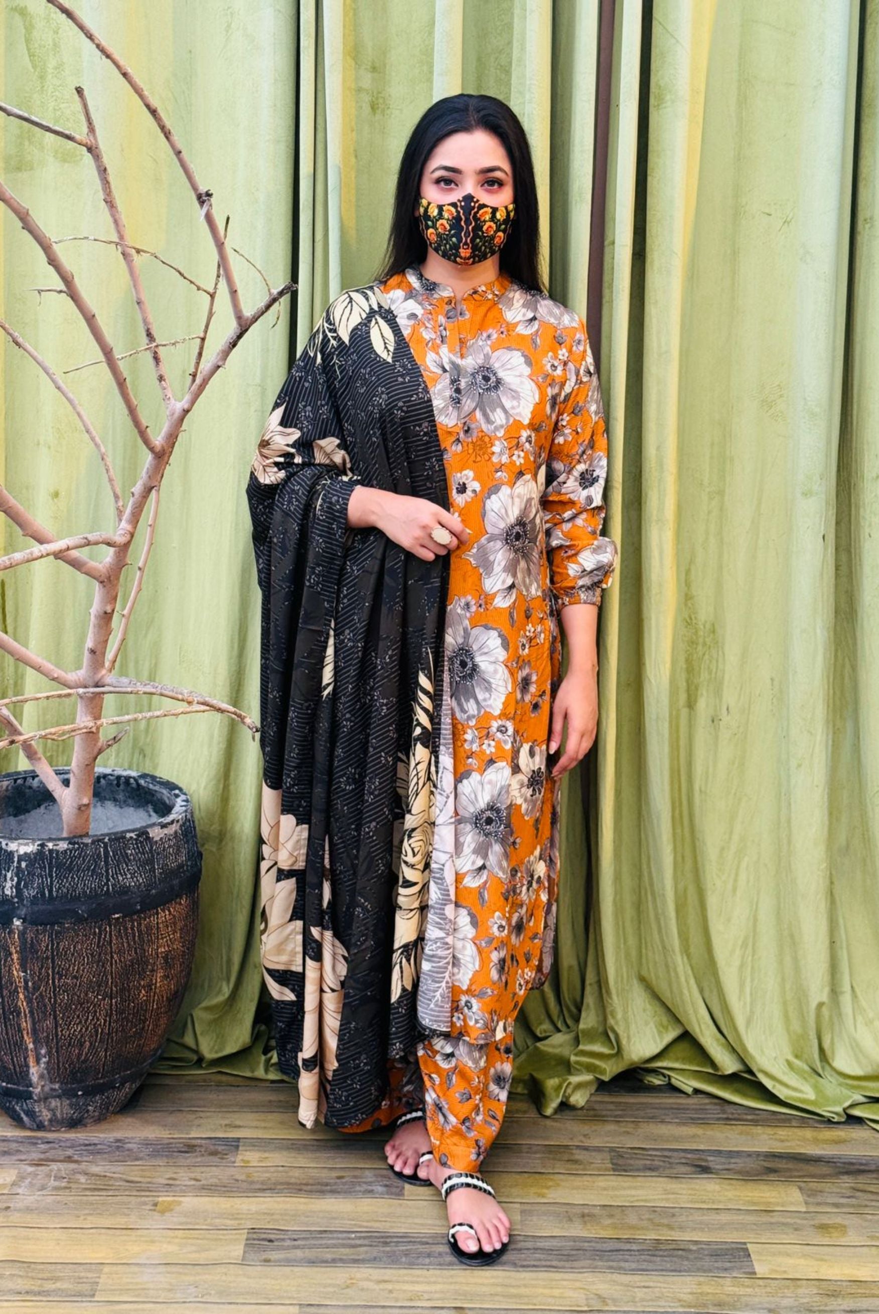 A Stylish Printed Shirt With Decorous Prints Is Paired Up With Trouser And Dupatta Which Is A Perfect Match For Any Occasion