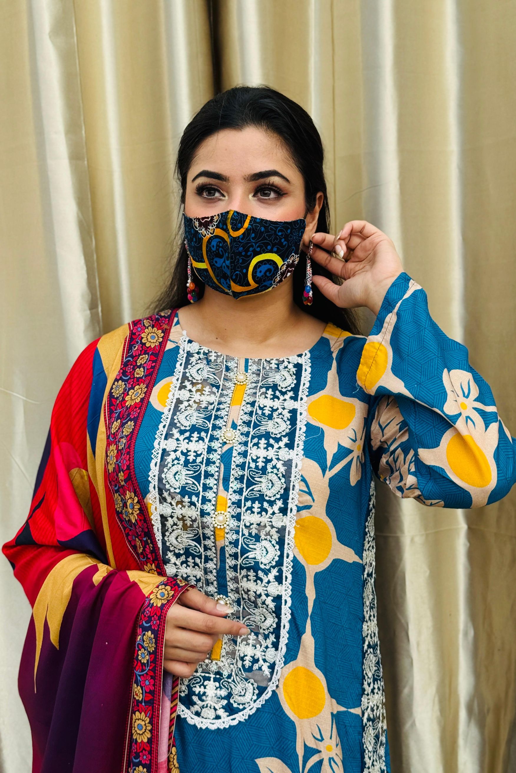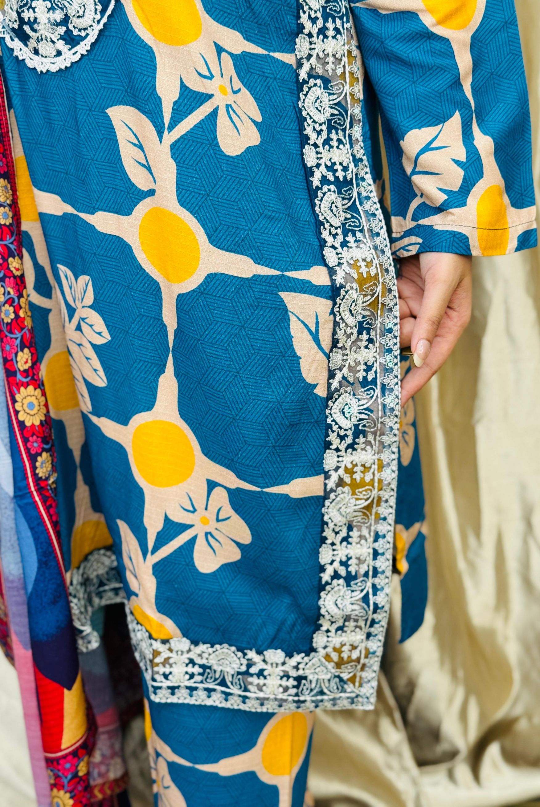 Fabric: Embroidered Cambric 3Pcs ( Shirt + Trouser + Dupatta)