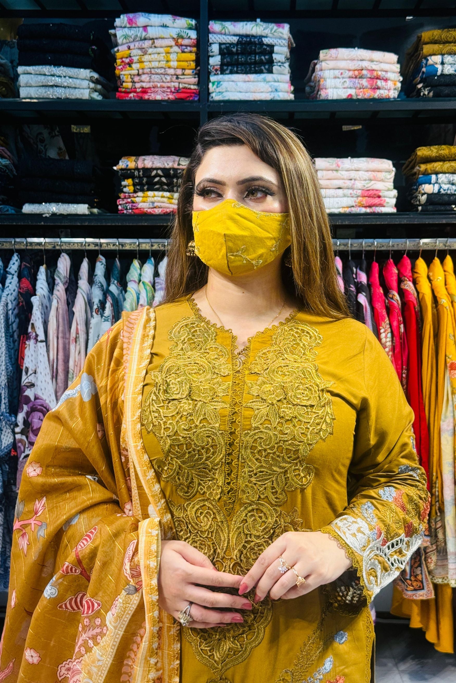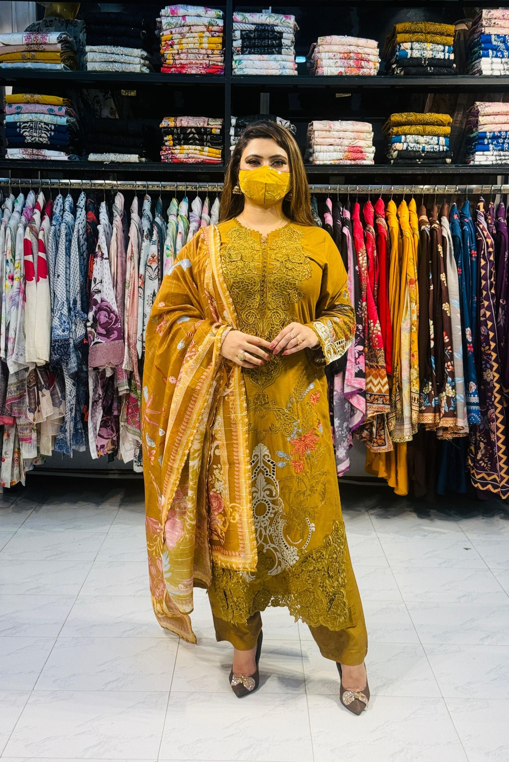Fabric: Embroidered Linen 3Pcs ( Shirt + Trouser + Dupatta)
