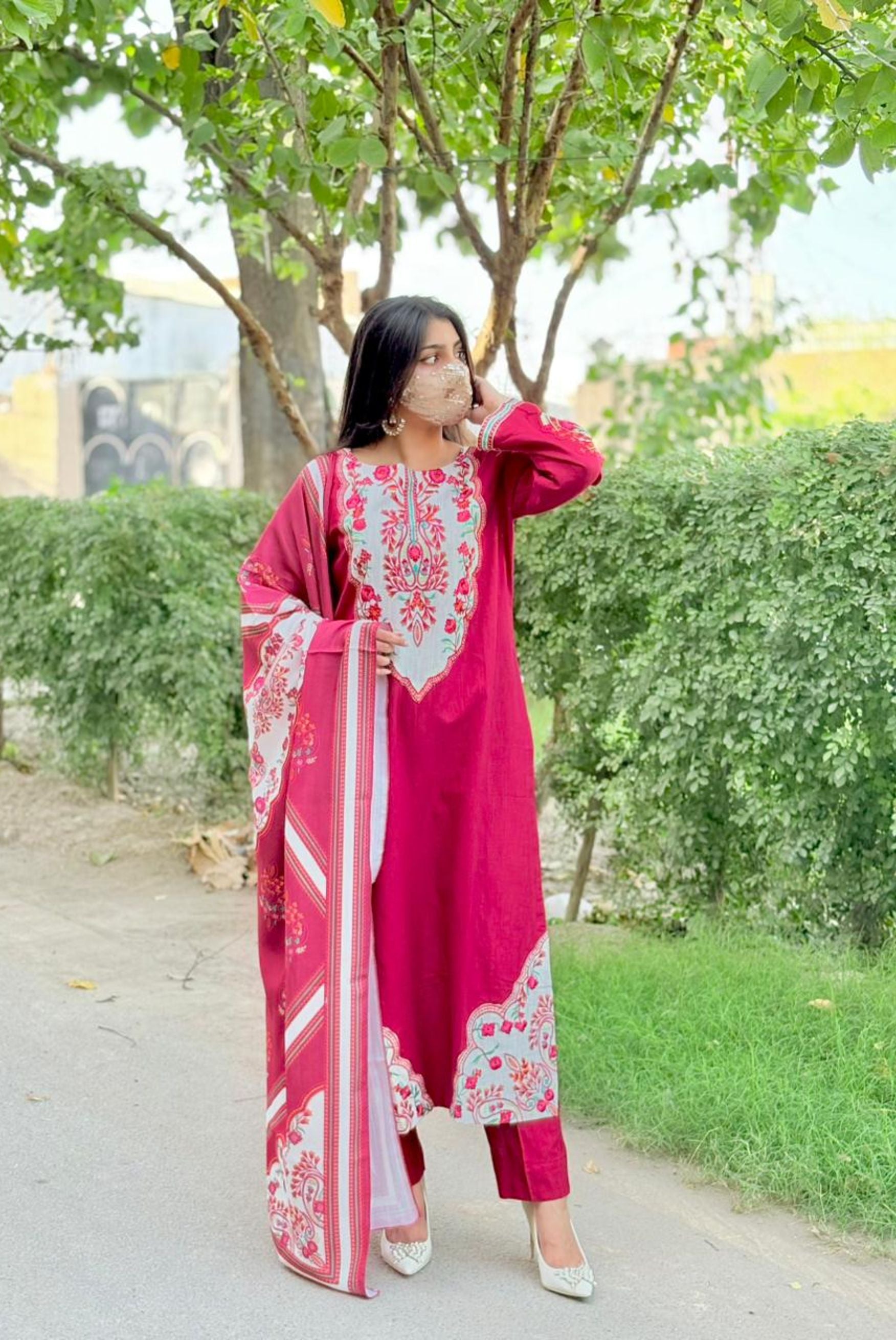 Fabric: Embroidered Khaddar 3Pcs ( Shirt + Trouser + Dupatta)