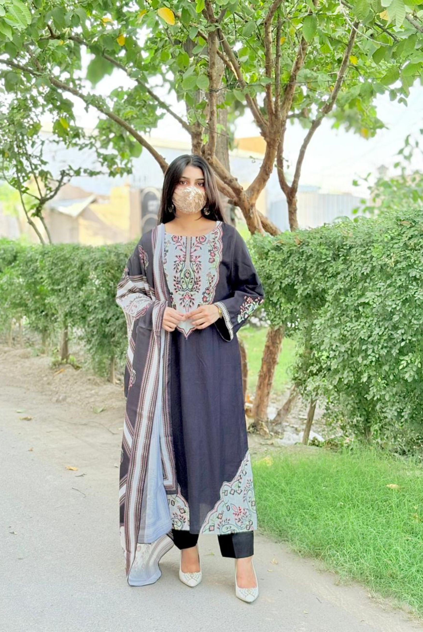 Fabric: Embroidered Khaddar 3Pcs ( Shirt + Trouser + Dupatta)