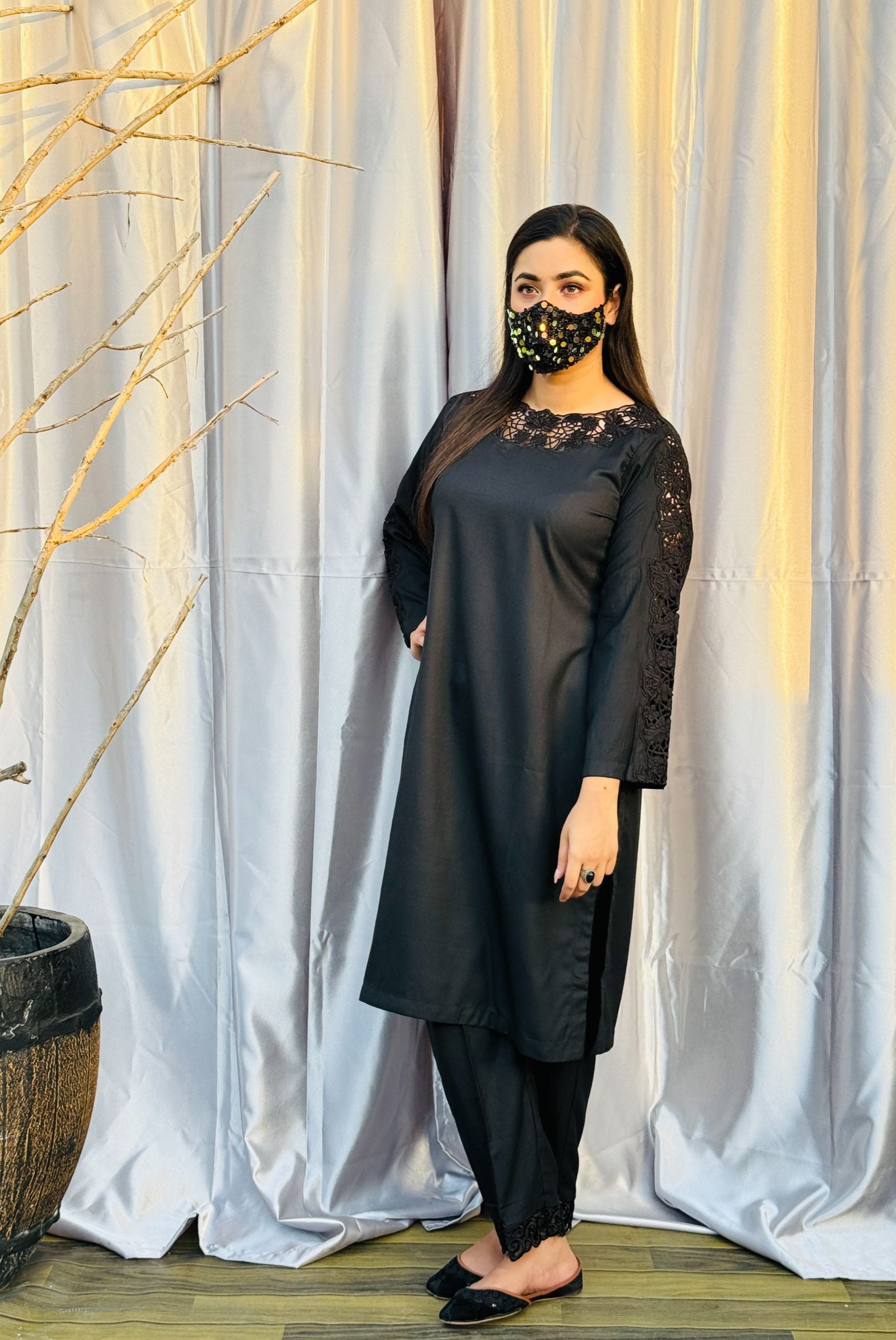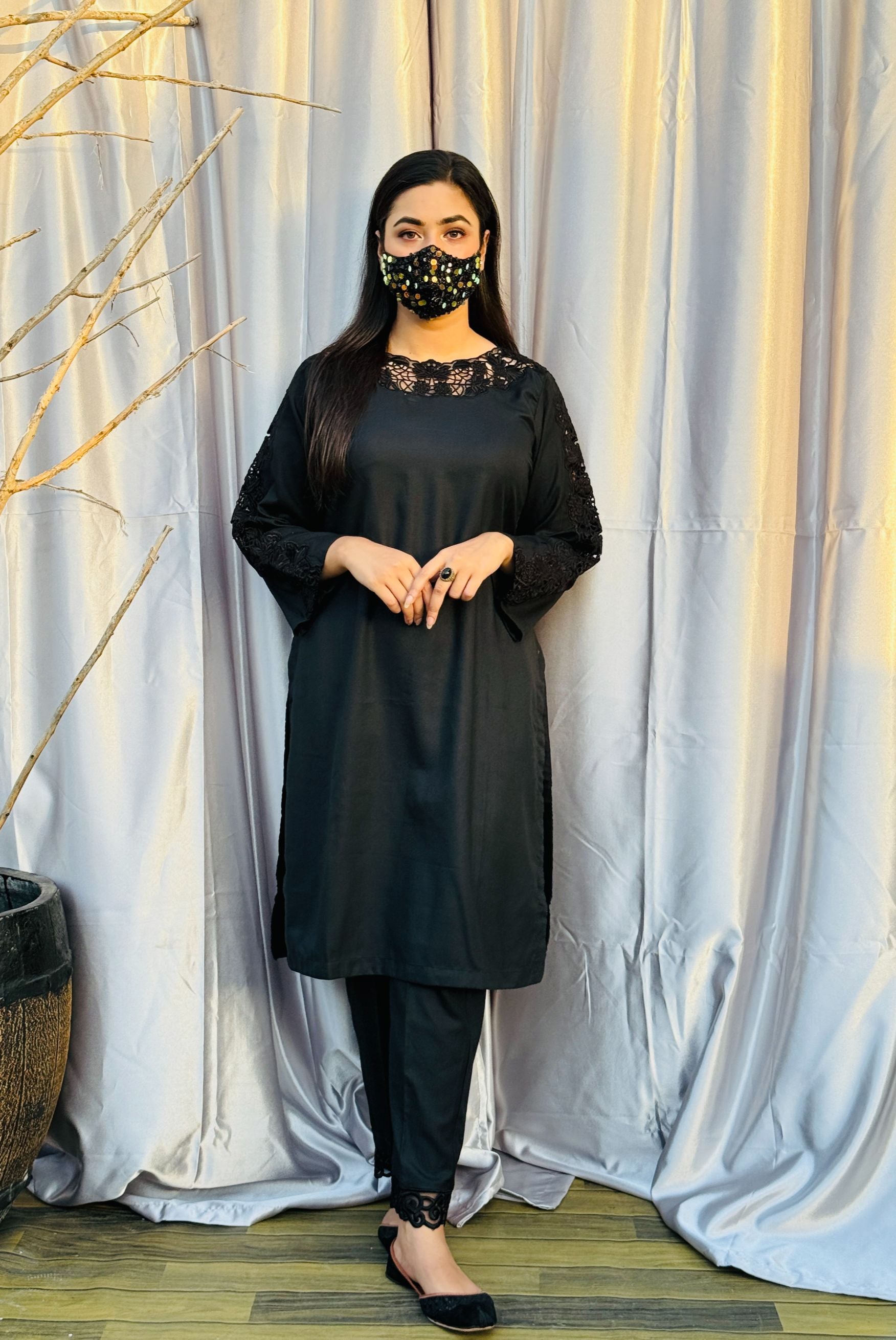 An Embroidered Dhanak Shirt With Decorous Embroidery On Neckline And Sleeves Is Paired Up With Trouser Which Is A Perfect Match For Any Occasion