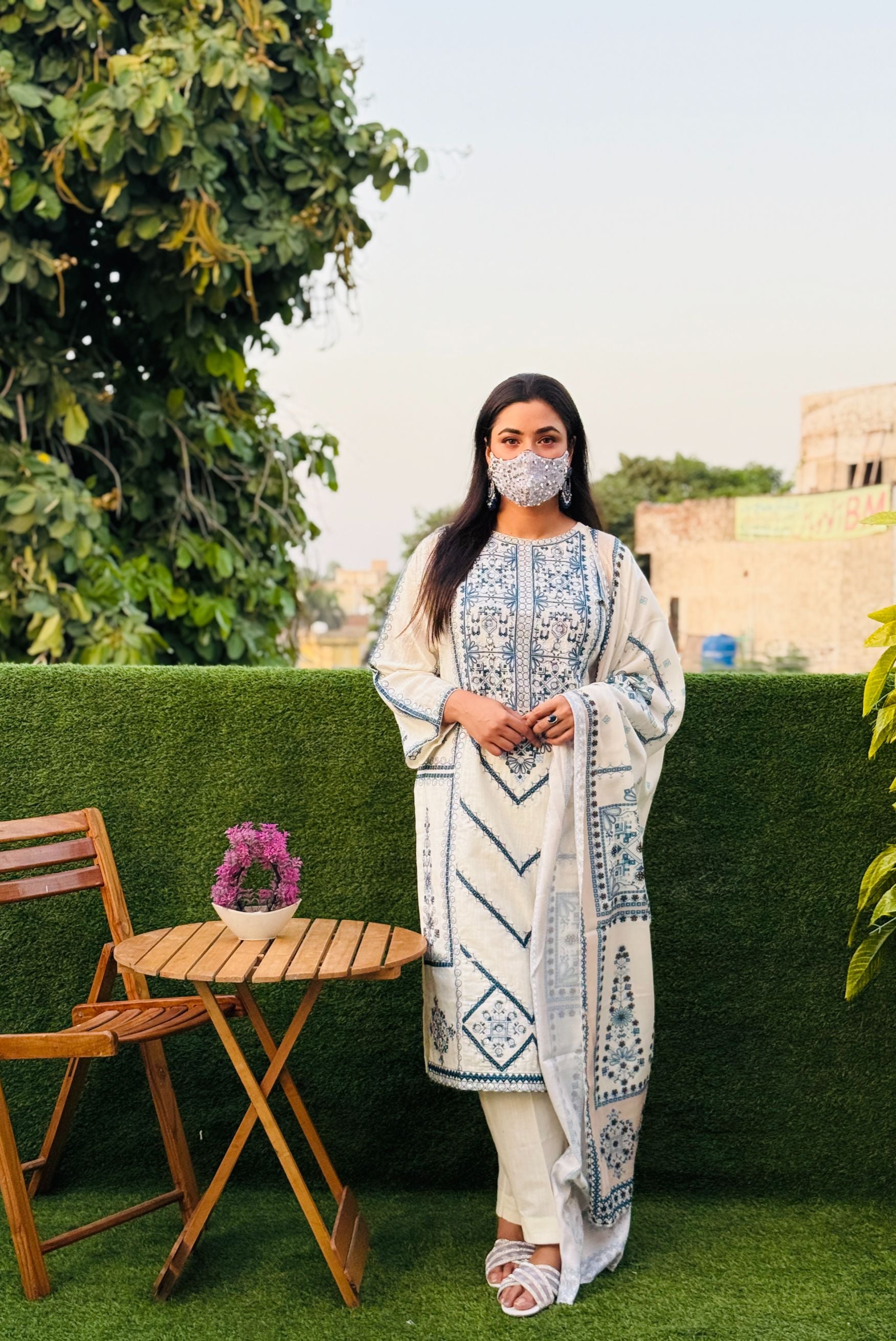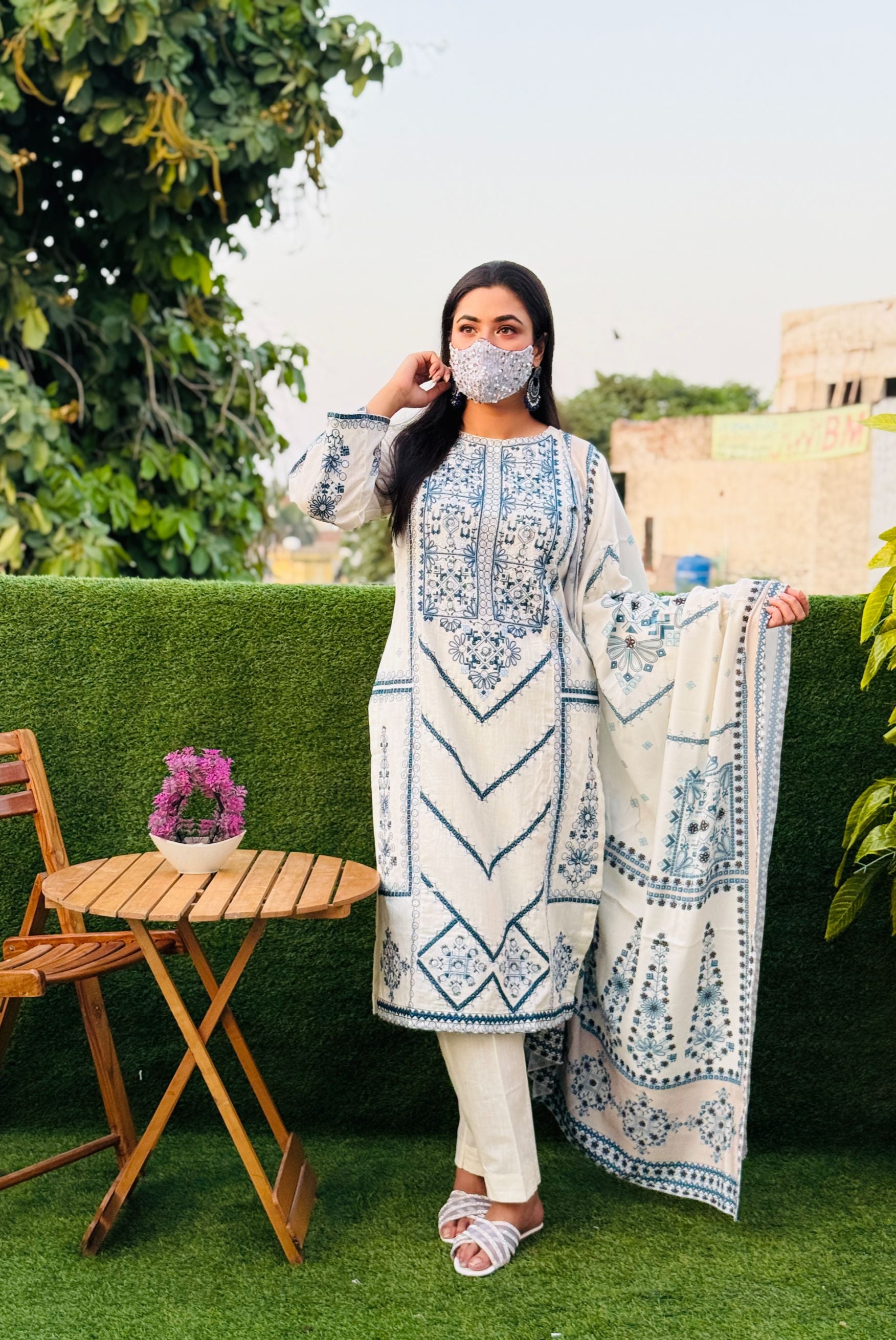 Fabric: Embroidered Khaddar 3Pcs ( Shirt + Trouser + Dupatta)